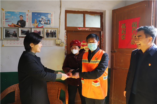 2月8日,市人大常委會副主任、鄲城縣委書記羅文閣深入汲水鄉押嶺村走訪慰問困難群眾和困難黨員等,為他們送去大米、食用油等慰問品和慰問金,把黨和政府的親切關懷和新春最美好的祝福送到群眾的心坎上??h委常委、辦公室主任馬超,縣委常委、組織部長蔣磊等參加慰問。