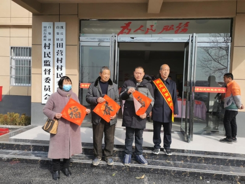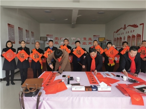 牛年春來早,農家喜事多。2月7日,陽光明媚,春光普照。沈丘縣農商銀行組織省市書協著名書法家來到沈丘縣白集鎮田營村, 為村民義寫春聯。