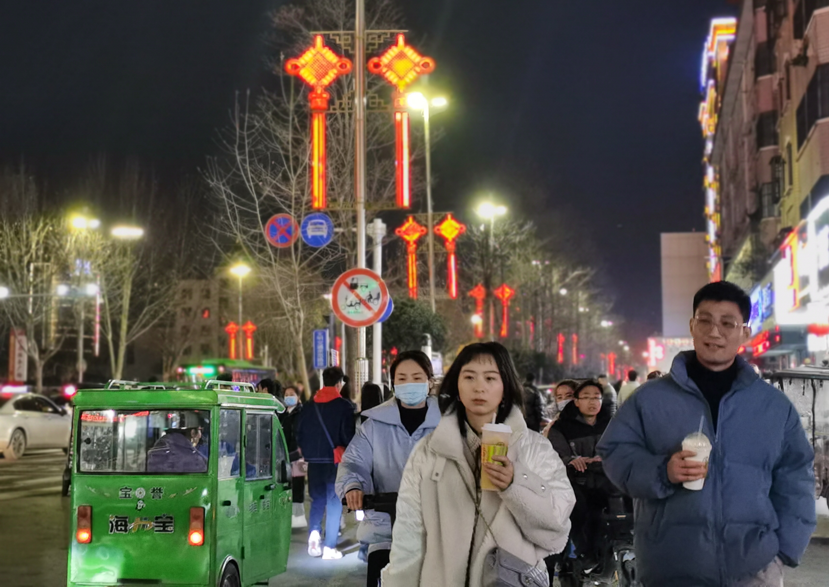 2021年春節(jié)將至,為給大家營造愉悅、喜慶、歡樂的節(jié)日氛圍,中心城區(qū)七一路掛上了中國結造型的彩燈,兩邊的商店也在門口掛起了各種紅燈籠。夜幕降臨后,紅彤彤的燈籠亮起來,街道變得絢麗多彩,把市區(qū)裝點得年味十足。②7
