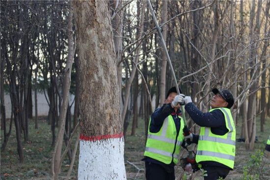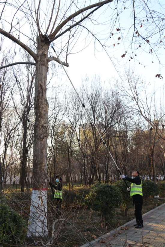 2月21日,城鄉一體化示范區城管局幾名市政管理人員在修剪周口大道兩旁的行道樹。據了解,通過一年的生長,行道樹衍生了許多無用枝條,如果對這些無用枝條不進行修剪,勢必影響今年的長勢。目前,道路兩邊的行道樹開始發芽,正是一年當中修剪的有利時機。城鄉一體化示范區城管局每天出動三班技術人員,對轄區內的行道樹進行修剪。