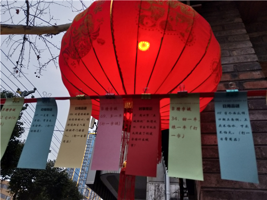 在元宵佳節到來之際,為倡導文明過節理念,營造和諧節日氛圍,2月26日晚,在交通大道與文明路交叉口西北角市民驛站舉行的趣味元宵節猜燈謎活動贏得了市民的熱情參與。