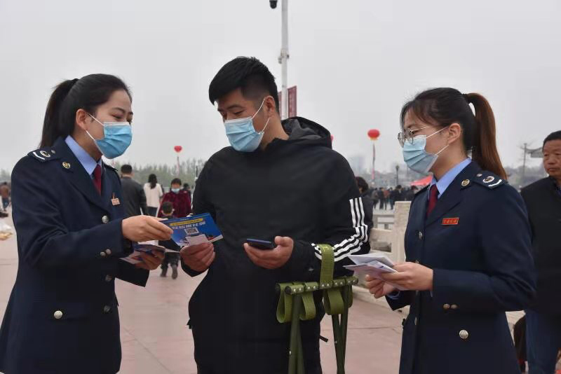 農歷二月二至三月三,是淮陽太昊陵一年一度的大型傳統廟會,吸引全國各地的萬千游客前來尋根問祖。4月7日,淮陽區稅務局以“便民辦稅春風行動”為契機,組織稅法宣傳志愿者深入太昊陵廣場,開展“送稅法進廟會”宣傳活動,向逛會游客、群眾和廟會攤主發放稅法宣傳資料。
