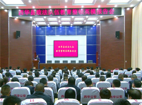 近日,西華縣召開政法隊伍教育整頓英模報告會。西華縣委常委、政法委書記陳秉生,縣法院院長王贊華,縣檢察院檢察長馬靈鈞出席報告會,縣委政法委,縣公安局、檢察院、法院、司法局中層及以上干警參加報告會。