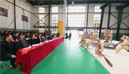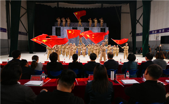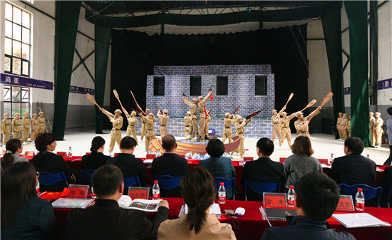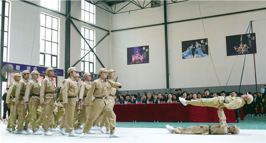 4月12日下午,項城市雜技藝術學校通過運用雜技藝術編創的紅色雜技劇,在該校首次面向社會展演,以慶祝建黨100周年。同學們穿著解放軍服裝,模擬渡江、登城、翻越城墻、槍林彈雨戰斗等場景,演繹了一場紅色文化教育的情景劇,讓人耳目一新,受到大家一致好評。周口日報·周道客戶端記者 梁照曾 攝