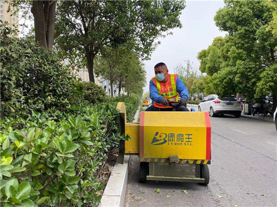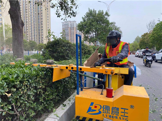 4月13日,周口大道上園林工人操作著特殊的園林作業車,修剪路邊的綠化樹,使用“電推子”,不僅提高了效率、節省了人力,就連“剃”出來的“平頭”也更平了。“電推子”所到之處,綠化樹被修剪得很齊整。②9