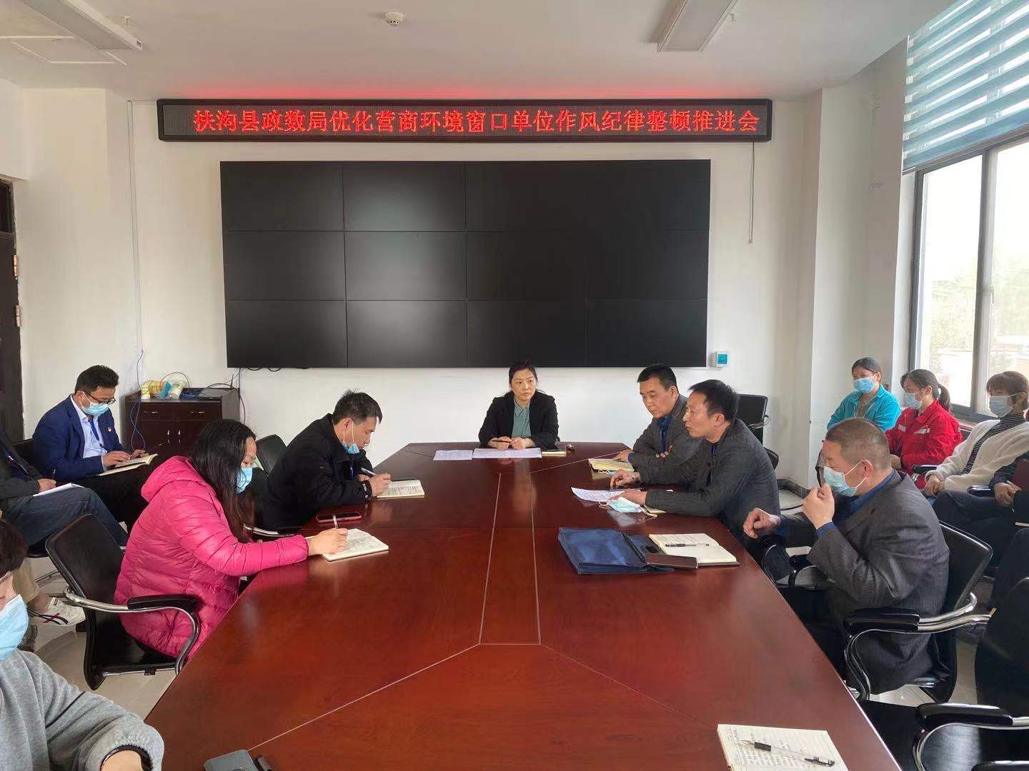 4月12日,扶溝縣政務服務和大數據管理局(以下簡稱“扶溝政數局”)召開優化營商環境窗口單位作風紀律整頓推進會。局長潘輝、副局長趙慶炎、副主任科員蘇勃、扶溝縣第十二派駐紀檢組干部鄭春祥及各單位窗口負責人參加會議。