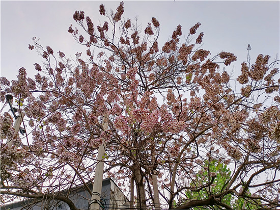 近日,中心城區建設大道旁一座院子里的梧桐樹開花了。記者看到,開滿花朵的梧桐樹花枝探出墻頭,滿樹的梧桐花美不勝收,如此畫面讓人忍不住駐足欣賞。③6