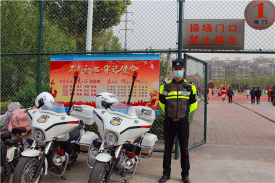 4月16日,鄲城一高舉行第12屆18歲成人儀式暨奠基高考決勝2022誓師大會。鄲城縣公安局副局長朱衛兵率領交警鐵騎隊兵分4路,從早上7時至上午11時在學校周圍維護交通秩序,確保數千名家長的車輛有序停放,疏堵保暢。