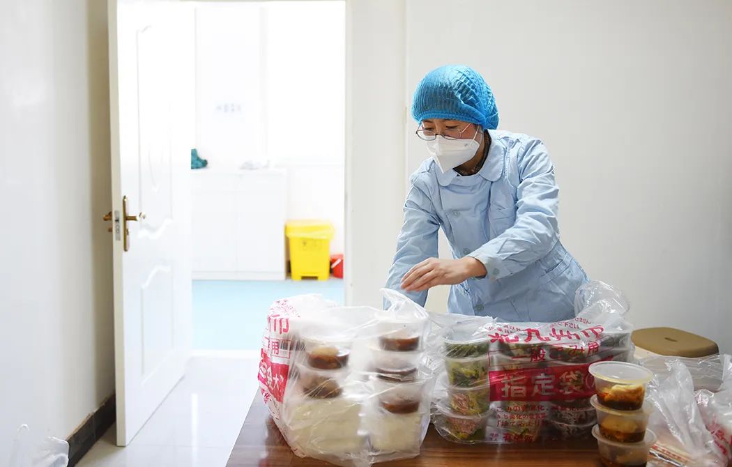 “韓某對銀耳過敏,醫院內餐部做的巧碗里有銀耳,絕對不能給她吃,要另外做一份;于某蛋白低,每餐要加一盒牛奶一個雞蛋,他不喜歡吃雞蛋,勸著他也得吃;有一個血糖高,早餐兩個素包子,不能帶粉條,粉條含淀粉,會增加血糖……”說起這些病人的情況,她了如指掌,一邊說著,一邊熟練地將幾筐飯菜分類打包,每一份都用食品袋包好,上面都寫上名字,再分別送去。