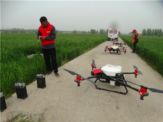 據了解,目前,該鎮日出動小麥無人機24架次,日防治面積2萬余畝,計劃4月19日,全鎮3.2萬畝麥田全部噴藥防控一遍。③5