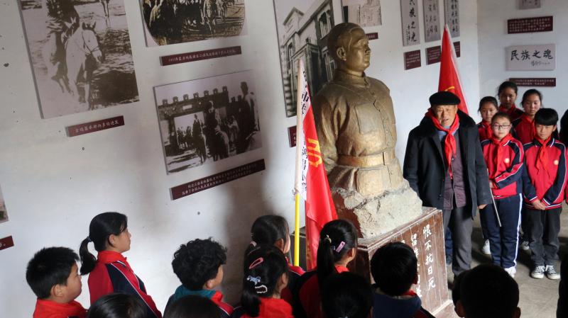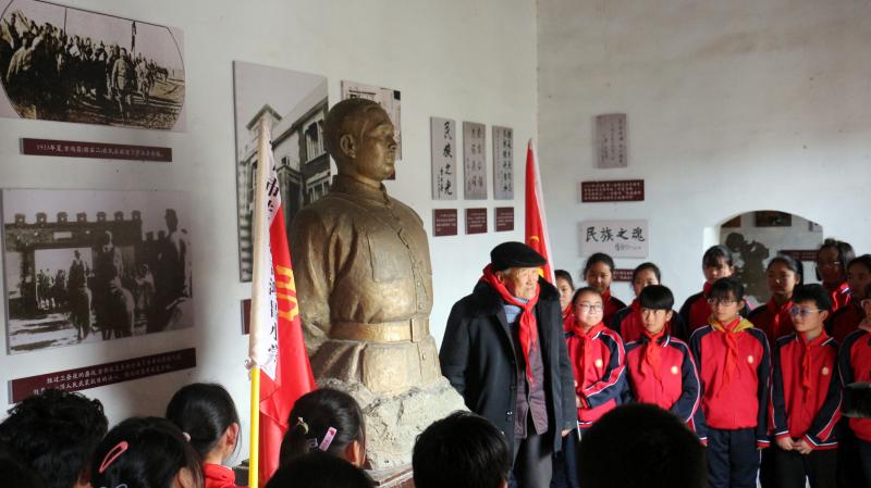 在全國上下掀起黨史學習教育熱潮之際,近日,來自吉鴻昌小學六(1)班的30名孩子,在學校少先隊輔導員的帶領下來到呂潭學校舊址,開展主題為“弘揚鴻昌精神、傳承紅色基因”的主題隊會活動,參觀了吉鴻昌學校和吉鴻昌故居,循著英雄的足跡,親身感受吉鴻昌精神的內涵,接受一場紅色的精神洗禮。期間,在吉鴻昌將軍塑像前,何國志老人生動地講解了吉鴻昌將軍親手斃堂侄、創辦吉鴻昌學校、首次向中國人介紹電視等身前事跡,在場的孩子感動得熱淚盈眶。 “聽了何爺爺的講述,我被吉鴻昌將軍的事跡深深感動,長大后也要成為一名像他一樣的人!”張晨曦同學說。