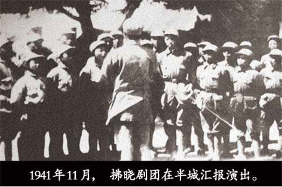 拂曉劇團冒著槍林彈雨在舞臺上不斷地錘煉、成長,積累了一大批革命劇目,也培養了許多人才,堪稱播種機。抗日戰爭勝利后,拂曉劇團和蘇中的前進劇團合并,改編為華中軍區政治部文工團,為解放戰爭的勝利,繼續作貢獻。②2