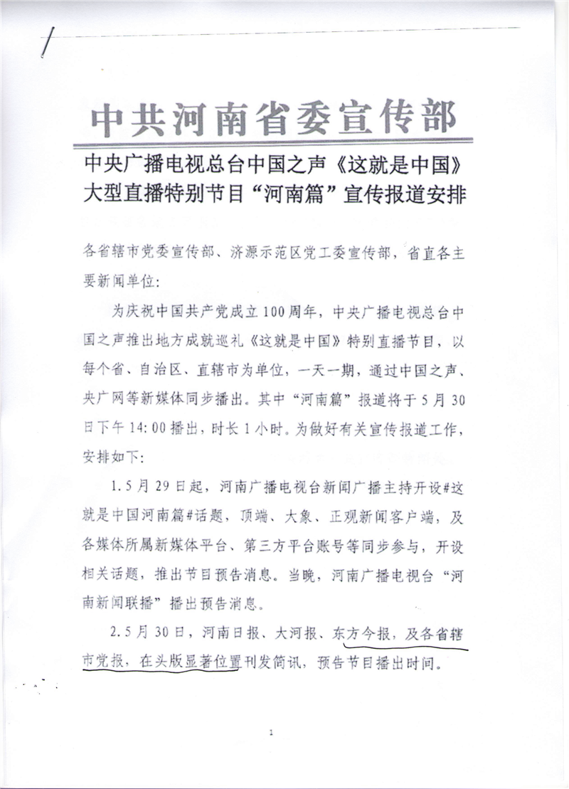 中央廣播電視總臺中國之聲《這就是中國》大型直播特別節(jié)目“河南篇”宣傳報(bào)道安排