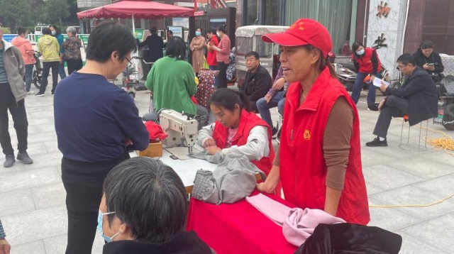 10月14日,在川匯區(qū)文昌大道的中原社區(qū)A區(qū)大門口,數(shù)十名身穿紅馬甲的志愿者在忙著幫社區(qū)老年人截褲腳、剪頭發(fā)、補鞋子。志愿者們深入社區(qū),為老年人服務。此外,他們還在蓮花路、太昊路、文明路、交通路街頭值勤,助力文明周口建設。