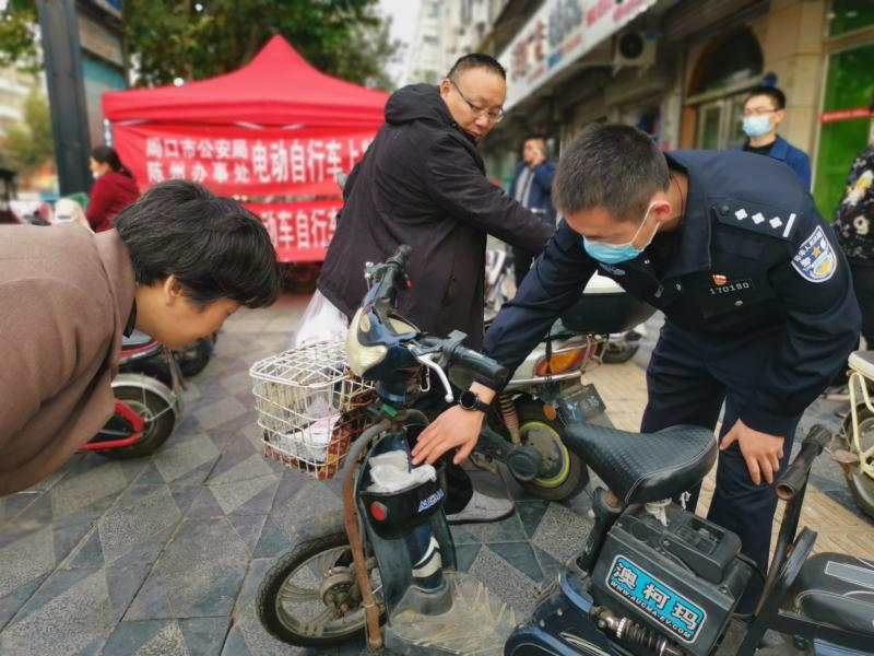 在中心城區交通大道與五一路交叉口的陳州辦事處電動自行車上牌處,不少車輛已經上過牌照停放在規定地點。“我是前天上的牌照,家里需要,我就買了輛新電動自行車,各項材料齊全,拿到上牌點很快就完成了上牌。”家住附近的市民李女士說。