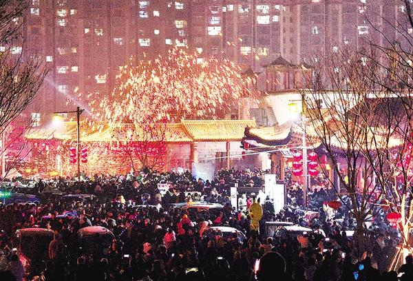 2月24日,元宵佳節,在關帝廟歷史街區,劃旱船、抬花轎、手甩龍等民俗表演精彩紛呈,特別是晚上的非遺表演打鐵花更是吸引了大量市民前來觀看。