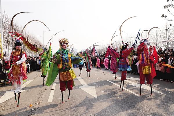 2月11日,元宵節前夕,周口大街小巷洋溢著元宵節的濃厚氛圍。在關帝廟文化廣場,嗩吶大賽正如火如荼地進行,來自全市的21支嗩吶代表隊展示各自的才藝。廣場旁踩高蹺、劃旱船表演相當精彩,觀眾看得熱血沸騰。