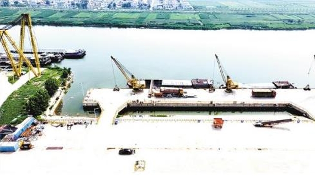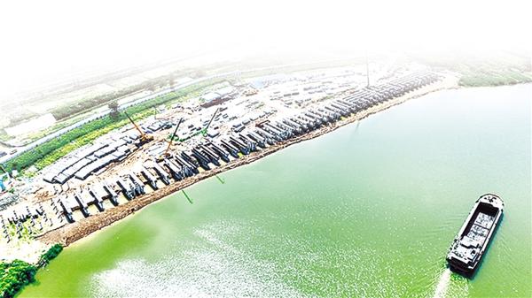 鹿邑港區(qū)玄武作業(yè)區(qū)于2021年5月底破土動(dòng)工,批復(fù)岸線(xiàn)118米,建設(shè)2個(gè)500噸級(jí)泊位,設(shè)計(jì)年通過(guò)能力為散貨進(jìn)出口100萬(wàn)噸。目前,鹿邑港區(qū)玄武作業(yè)區(qū)主體工程已全部完工,機(jī)械作業(yè)設(shè)備已全部到位。記者在現(xiàn)場(chǎng)看到,工人正在進(jìn)行后方陸域及服務(wù)區(qū)建設(shè)。