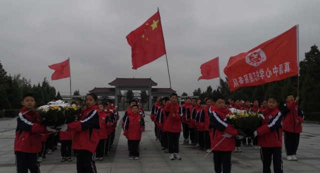 4月4日上午,鹿邑縣真源中心學校師生代表40多人在校長劉亞萍帶領下,赴鹿邑八里河烈士陵園,開展清明節烈士陵園祭掃活動。