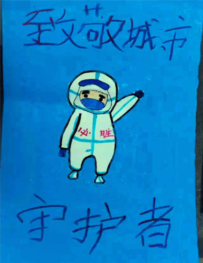 到太康3天后,武蕓輝又被派到縣城內的封控區進行核酸采樣,這里工作量更大,危險程度高,要挨家挨戶上門采樣,武蕓輝和年輕人一樣,每日樓上樓下反復數次,多次衣服被汗水浸透。有時天氣炎熱,很多人穿起了短袖,武蕓輝她們穿著密不透風的防護服,還要樓上樓下反復跑,體力透支很大。一分耕耘一分收獲,在建業小區南院,武蕓輝上門核酸采樣結束后,一個叫鄭迪一的小朋友叫住了她:“阿姨,辛苦了,謝謝您!”隨后又遞給武蕓輝一個袋子,里面有孩子寫的感謝信和繪畫。