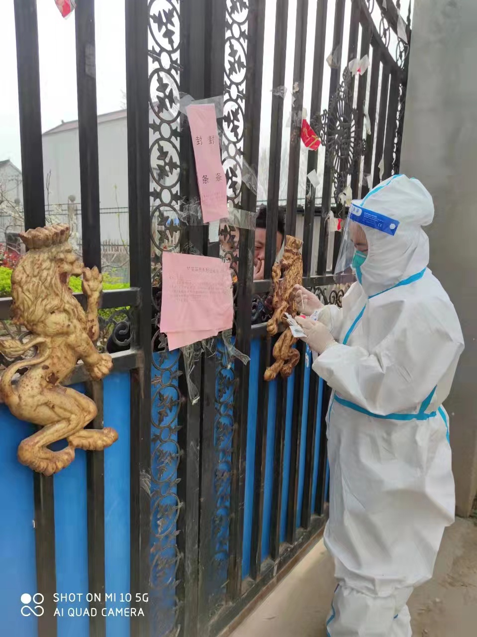 許夢蝶她們?nèi)サ拇宸稚⑤^廣,從凌晨開始一個村挨一個村地跑下去,汗水很快濕透防護服,一般到下午2點,前來采樣的村民會逐漸變少,但是饑腸轆轆的她卻不能就餐,因為偶爾還會有村民過來采樣,如果脫下再穿防護服肯定會耽擱村民的時間,“我們本來就是為人民服務的,我們等等無所謂,不能讓老百姓來等我們”,許夢蝶當時這樣想著,然后婉拒了工作人員的就餐邀請,等沒有村民來采樣了再休息。她們吃完飯與大部隊集合的路上,突然隊長接到鄉(xiāng)長的電話說人手不夠讓回去采集封控村,她們立刻掉頭回去,沒有任何怨言,沒有任何要求。到了以后工作人員通知說這個村500多人要入戶采集,她們立即穿上防護服就開始了工作,和村干部及志愿者相互配合,拿著未集中核酸采樣的群眾名單,不停穿梭在村里的大街小巷、房前屋后、床邊炕頭進行現(xiàn)場核酸采樣。臨走時叮囑群眾日常防護不能大意,勤洗手、勤消毒、戴口罩,卻忘記了我們自己已經(jīng)濕透的衣服還有灌鉛似的雙腿……