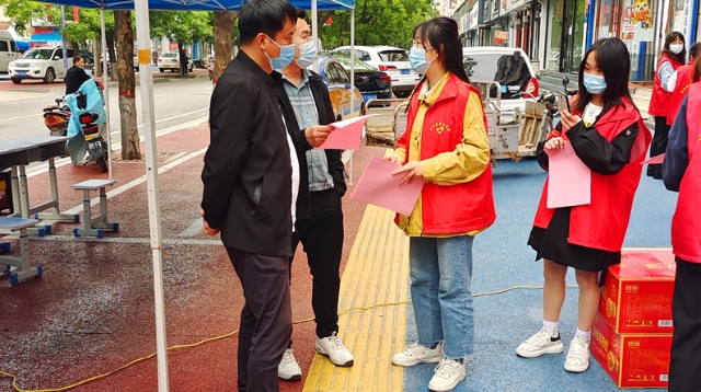 4月29日,商水團(tuán)縣委組織30余名志愿者向沿街商戶(hù)宣傳疫情防控政策,提醒沿街商鋪商家落實(shí)好掃“兩碼”、測(cè)體溫、出入登記等各項(xiàng)疫情防控措施。