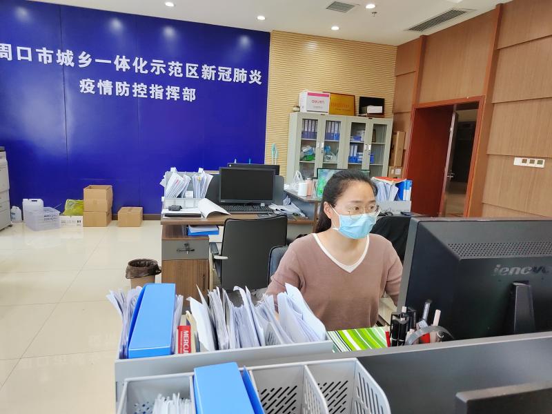 5月4日上午,宋潔霞和同事們像往常一樣來到單位開始上班,辦公桌上擺放著各式各樣的文件,除了日常對疫情防控公文進行處理外,她還負責綜合協調,做好信息的上傳下達工作。困了就以桌椅為床,長期久坐讓她下肢血液流通不暢,身體承受病痛折磨,但她仍帶病堅持工作,較好完成領導交辦的各項任務。