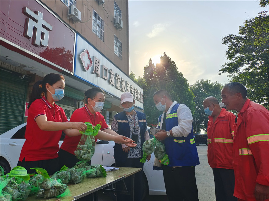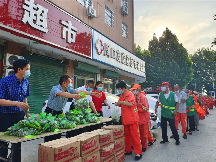 活動現場,工作人員將粽子依次遞到環衛工人手中,并向他們致以誠摯的問候和節日的祝福。