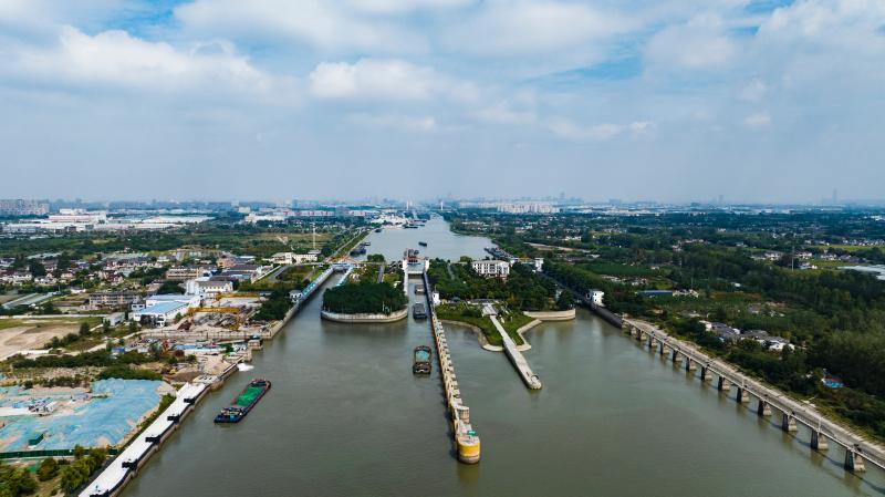 9月27日上午,“豫貨出海、周向世界”采訪組B組來到位于揚州市長江北岸的施橋船閘。古鎮施橋,長江與大運河在這里交匯,施橋船閘就位于這個交匯點上。