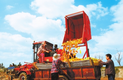 聊起機械收獲玉米的好處,付井鎮王寨村黨支部書記王運啟眉飛色舞。“玉米機械化收割,一次能完成玉米莖稈切割、摘穗、剝皮、集穗、秸稈粉碎等多項作業,秸稈打碎還田,既保護環境,又給土地增了肥,增加了村民的種植效益。”