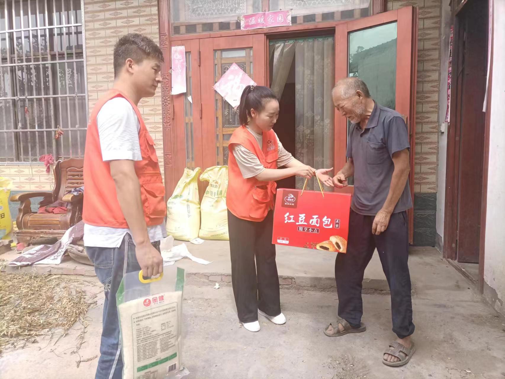 義演活動結束后,志愿者們帶著大米、面包等物品分組前往西營行政村、魏寨行政村、支亭行政村看望行動不便的老人。