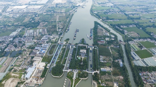 運河轉漕達都京,策馬春風堤上行。千百年來,京杭大運河貫通南北、貨暢其流,施橋船閘也在發揮出日益巨大的效益。②18