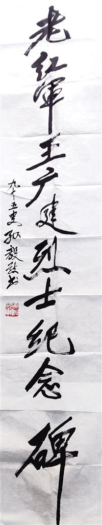 1999年,孫毅將軍95歲時為王廣建烈士紀念碑題寫的碑文。