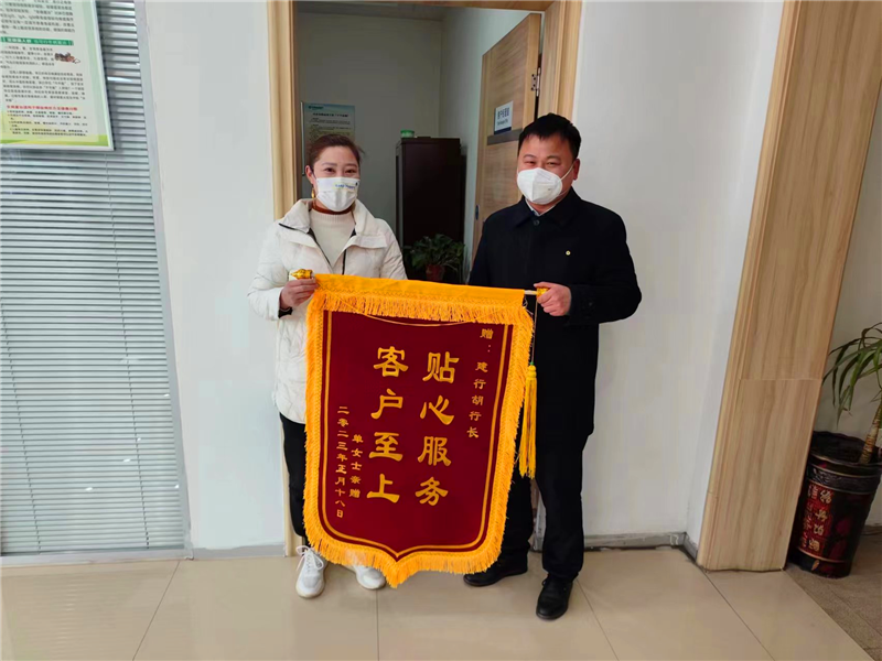 建設(shè)銀行項城蓮花大道支行負(fù)責(zé)人胡洋洋表示,想客戶之所想,急客戶之所急,是建行所有工作人員一直秉承并踐行的服務(wù)理念,這沉甸甸的錦旗不僅是對項城蓮花大道支行優(yōu)質(zhì)服務(wù)的高度認(rèn)可,更是承載著廣大客戶對建行滿滿的信任。