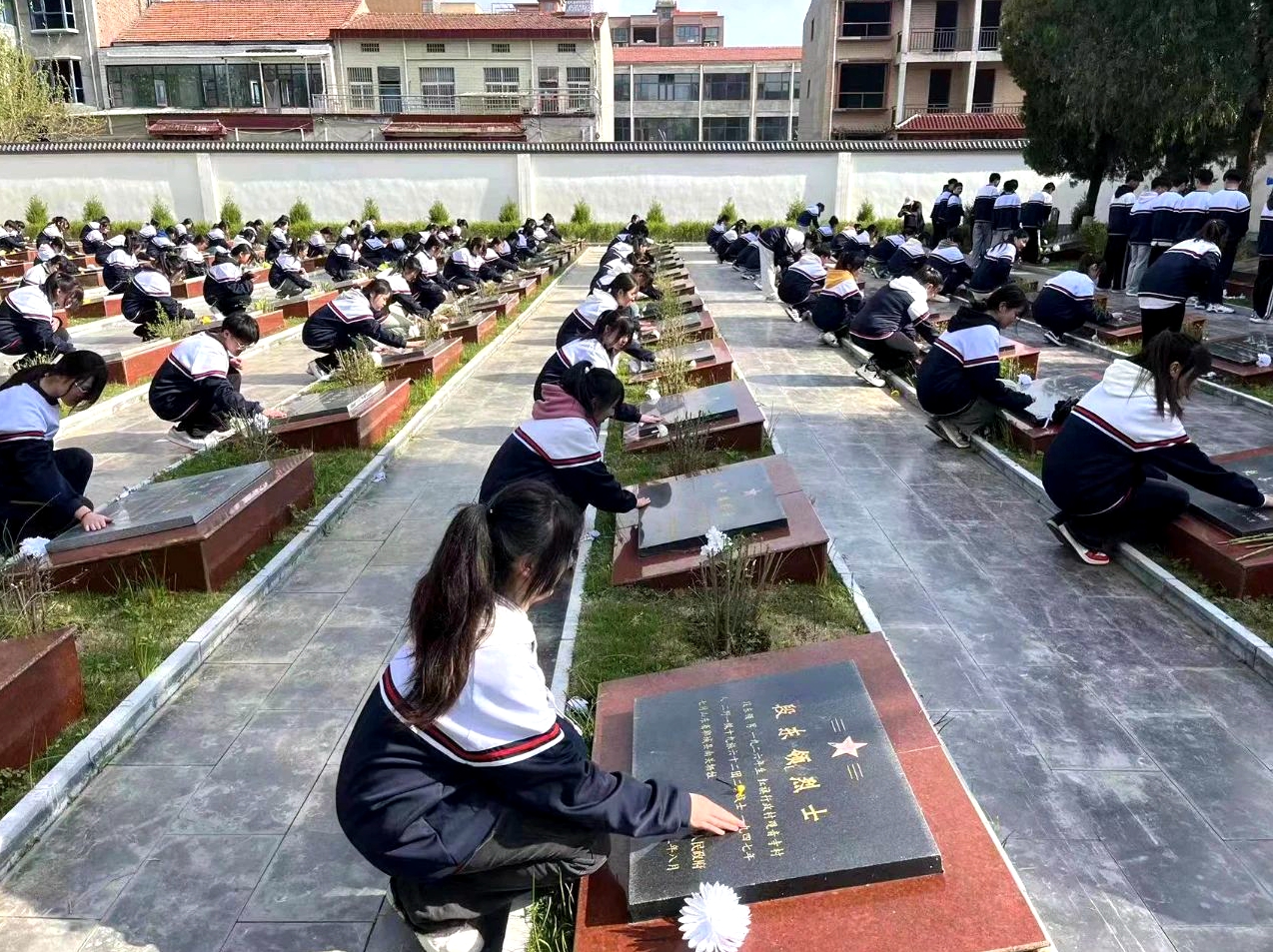 當(dāng)日上午,鄲城縣第三高級中學(xué)為悼念革命烈士,緬懷先烈的豐功偉績,教育學(xué)生弘揚(yáng)民族精神,加強(qiáng)愛國主義教育,組織師生到鄲城縣烈士陵園開展“清明祭英烈 ”為主題的清明節(jié)祭掃活動。