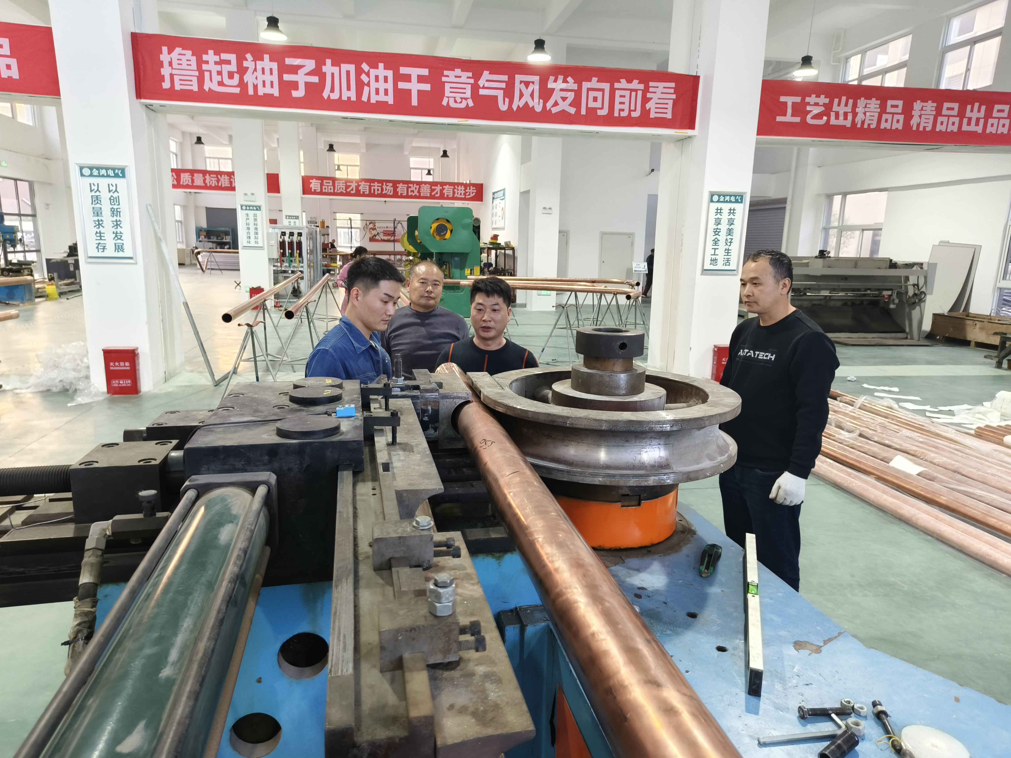 10月26日21時,臨港開發區中興新業港產業園內,河南金鴻電氣有限公司(以下簡稱金鴻電氣)生產車間燈光明亮,十多位技術工人加班加點,趕制重慶鋼廠訂購的一批絕緣銅管母線,11月初,這筆產品必須完成、送到。金鴻電氣總經理苑福來說:“今年工廠邊建設邊生產,預計年產值能達到1億元,為明年產能擴張打下基礎。”