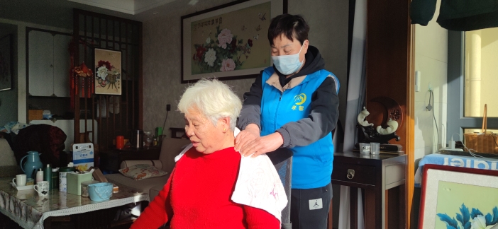 “打掃得真干凈。俺閨女說,以后不讓我打掃家里的衛生了,你們一個星期來一次就行。”在建業社區,剛享受過護理員按摩服務的75歲的趙阿姨說。