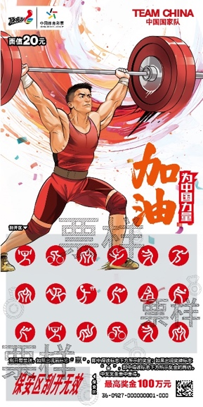 每一張20元面值的“為中國力量加油2024”其中4元將匯入彩票公益金,支持中國公益事業和體育事業的持續發展。2011-2023年,共計99億元體育總局本級體彩公益金用于支持競技體育人才培養、奧運爭光計劃綱要保障項目等十余項競技體育項目。