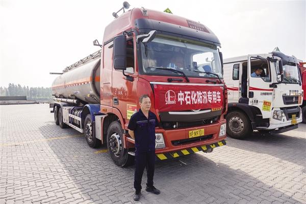 中石化周口石油分公司組建防汛應急隊伍,調配防汛專用車及專業裝備參與演練。