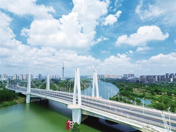 7月25日,藍天白云映襯下,周口市七一路跨沙潁河大橋以“揚帆出海”的獨特造型,生動展現了這座中原港城的雄心。作為河南“豫貨出海”的橋頭堡,周口正肩負起港口型國家物流樞紐承載城市的重任,推動“經濟通道”邁向“通道經濟”,實現高質量發展。