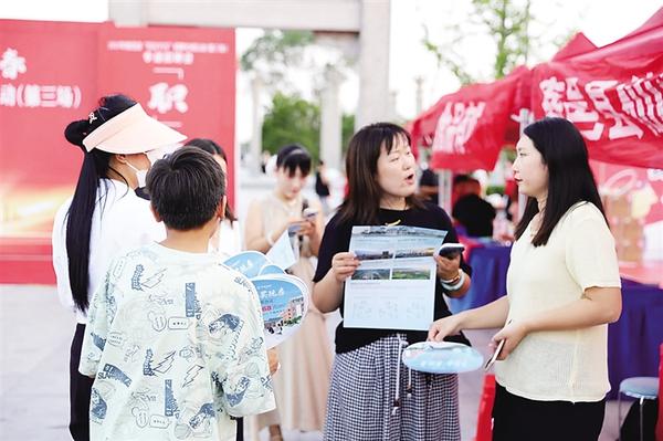 8月14日、15日,鹿邑縣人社局等單位在弘道苑廣場聯(lián)合舉辦“職引未來 筑夢青春”專場招聘會。此次招聘會邀請28家企業(yè)參加,提供涵蓋食品加工、智能制造、電子商務(wù)、餐飲服務(wù)等領(lǐng)域優(yōu)質(zhì)就業(yè)崗位50余個(gè)。圖為招聘會現(xiàn)場。 記者 侯國防 通訊員 陳朝威 攝