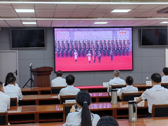 收看過(guò)程中,大家心情澎湃,感慨萬(wàn)千。現(xiàn)場(chǎng)氣氛莊重而熱烈,大家全神貫注,聆聽(tīng)習(xí)近平總書(shū)記重要講話(huà),滿(mǎn)懷激動(dòng)與自豪的觀看閱兵儀式的全過(guò)程。當(dāng)威武雄壯的三軍儀仗隊(duì)邁著鏗鏘有力的步伐率先通過(guò)天安門(mén)廣場(chǎng)時(shí),當(dāng)一個(gè)個(gè)裝備方隊(duì)展示著彰顯國(guó)家實(shí)力的現(xiàn)代化尖端武器時(shí),當(dāng)戰(zhàn)機(jī)梯隊(duì)以恢宏陣勢(shì)呼嘯掠過(guò)蒼穹時(shí),大家內(nèi)心迸發(fā)出由衷的贊嘆,為祖國(guó)日益強(qiáng)盛而自豪。