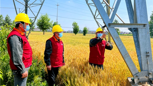 5月31日,國網西華縣供電公司組織焦裕祿共產黨員服務隊深入聶堆鎮田間地頭開展供電隱患排查。
