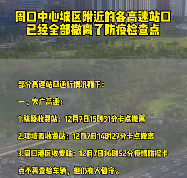 中心城區高速站口防疫卡點撤銷