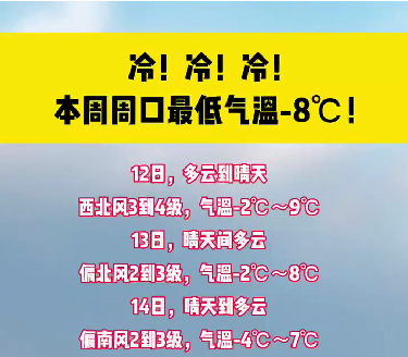 本周周口最低氣溫-8°C!