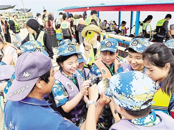 7月6日,“逐夢深藍·礪志海疆”周報研學威海夏令營圓滿落幕。小營員們在布魯維斯號沉船紀念地合影留念,領取結業證書。
