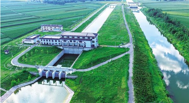 8月26日,“引江濟淮”河南源頭鄲城袁橋泵站水質清澈,四周綠意盎然。