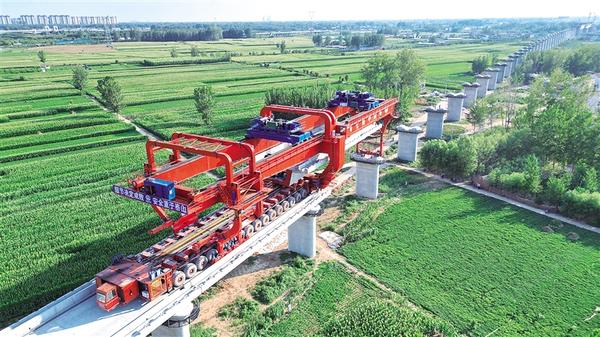 7月31日下午,中鐵七局的施工人員正在西華縣東王營鄉為平漯周高鐵架設箱梁。目前,周口市境內的平漯周高鐵已架設箱梁近7公里。