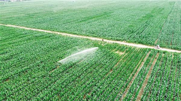 7月9日,炎炎烈日下,市城鄉一體化示范區許灣街道蔣橋村農民正使用灌溉設備為農作物澆灌。噴涌而出的水花在陽光下劃出銀亮的弧線,滋潤著干旱的秧苗。連日來,面對持續高溫帶來的旱情,農民們爭分奪秒引水抗旱,用辛勤汗水守護著田間的莊稼。