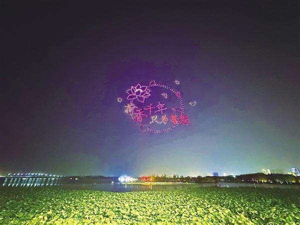 7月11日至7月12日,無人機星空秀在太昊伏羲陵文化旅游區精彩上演。作為第四屆周口荷花節暨文旅消費季的亮點活動,在夜幕降臨時,數百架無人機騰空而起,以夜空為畫布、以燈光為筆,在光影交織中勾勒出唯美畫面。